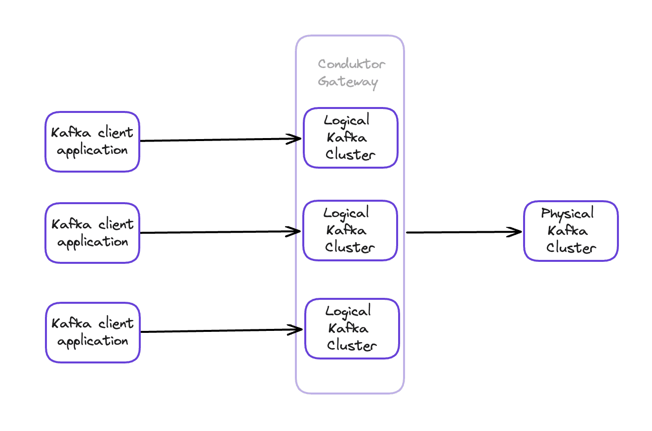 Multi-tenancy splits one physical Kafka cluster into isolated virtual clusters. Each tenant sees a standard Kafka cluster but can't access other tenants' resources.