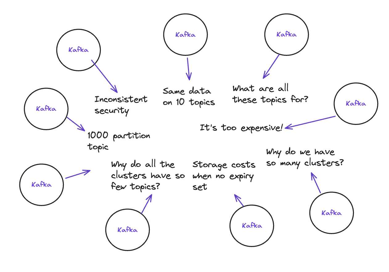 Kafka adoption follows a predictable arc. One team discovers it, runs it themselves, and life is good. Other teams notice, start using it too, and suddenly you're managing a sprawling mess of clusters, topics, and competing practices.