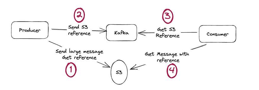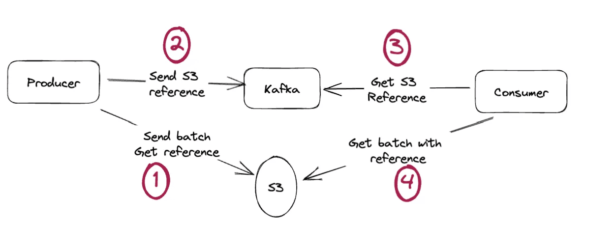 This bypasses all large record issues. What goes into Kafka is a simple string like "s3://mybucket/myfile.pdf". Minimal payload.