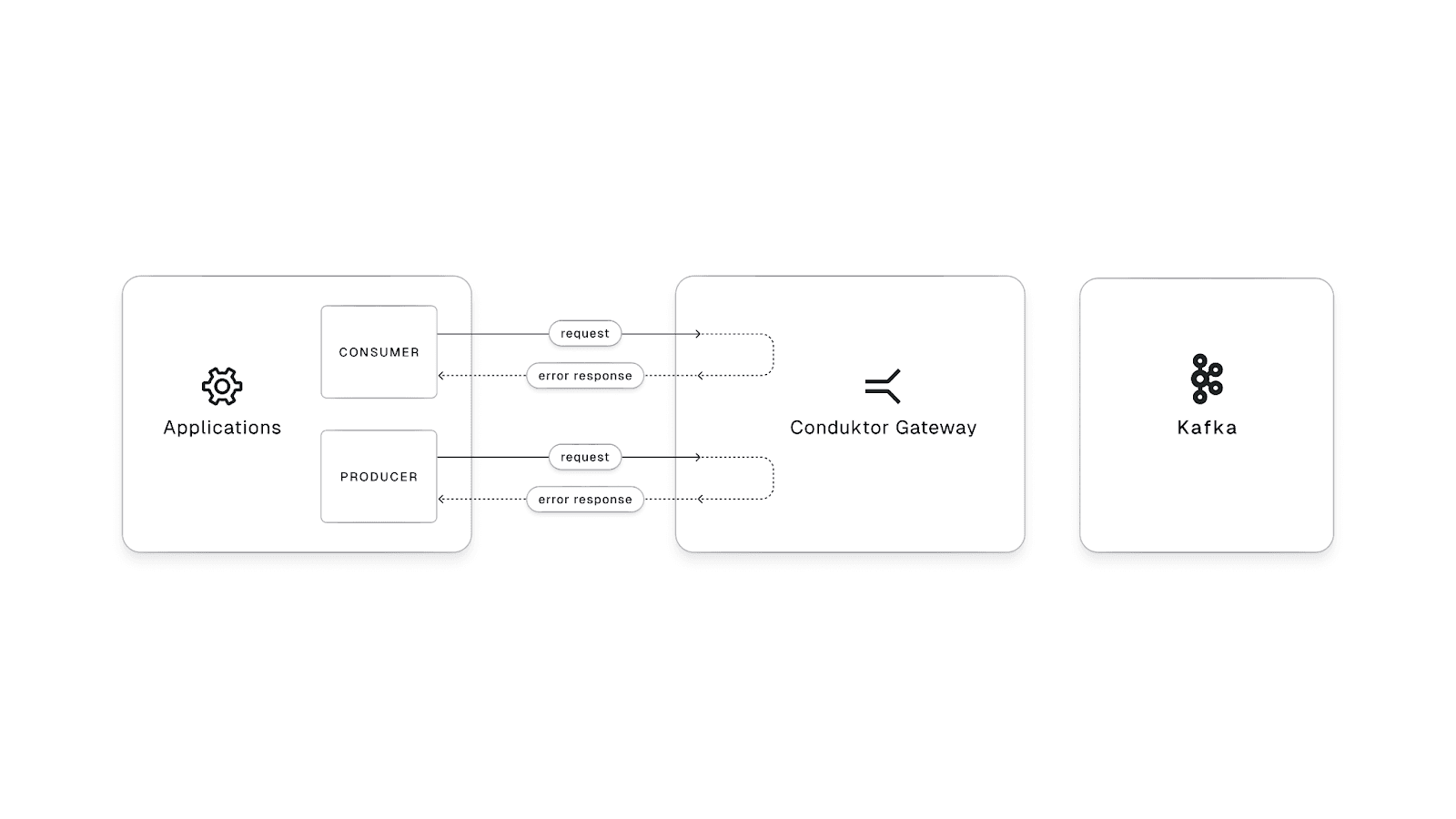 Gateway proxies read and write requests, responding with specific Kafka error codes that mimic real failure scenarios. Your application faces realistic failures. Your Kafka cluster stays untouched.