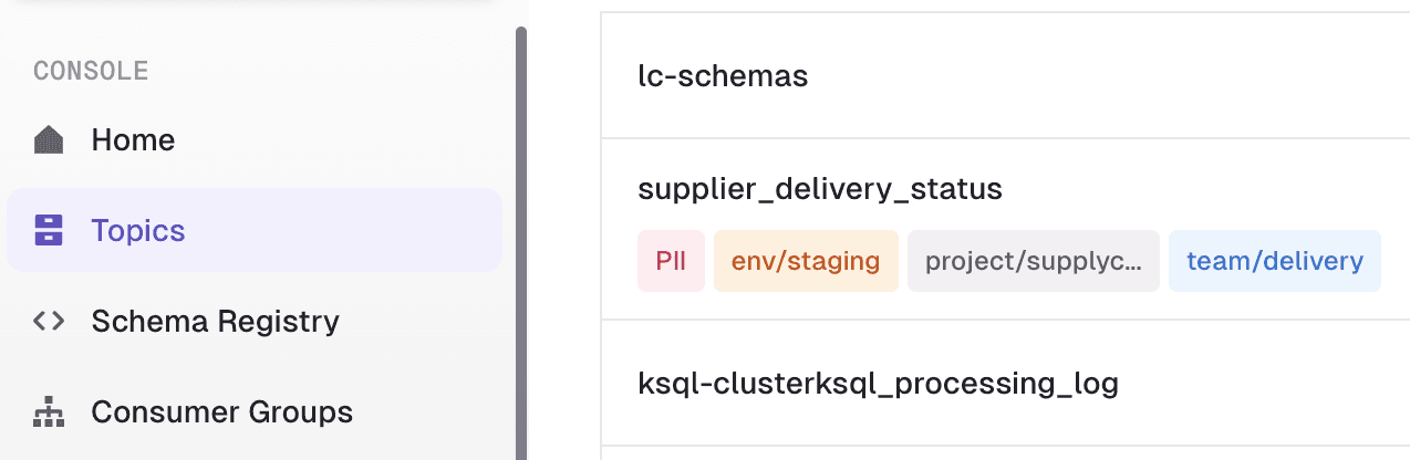In Conduktor, tags on topics clarify ownership and simplify management: