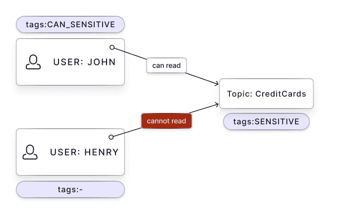 Example: Sensitive data tagged sensitive requires users or roles tagged can_sensitive to interact with it.