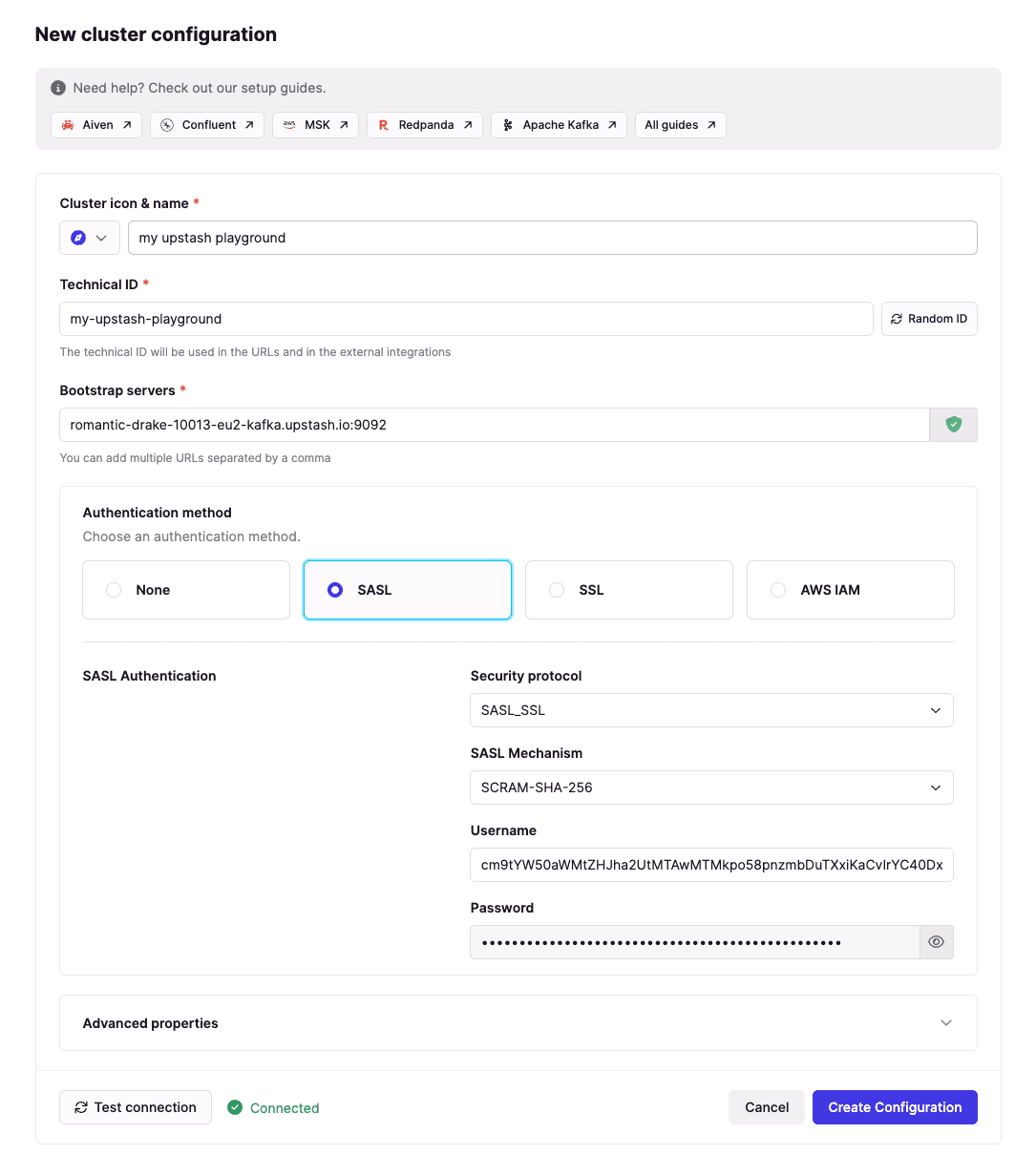 "kafka.bootstrap.servers": "romantic-drake-10214-eu1-kafka.upstash.io:9092",