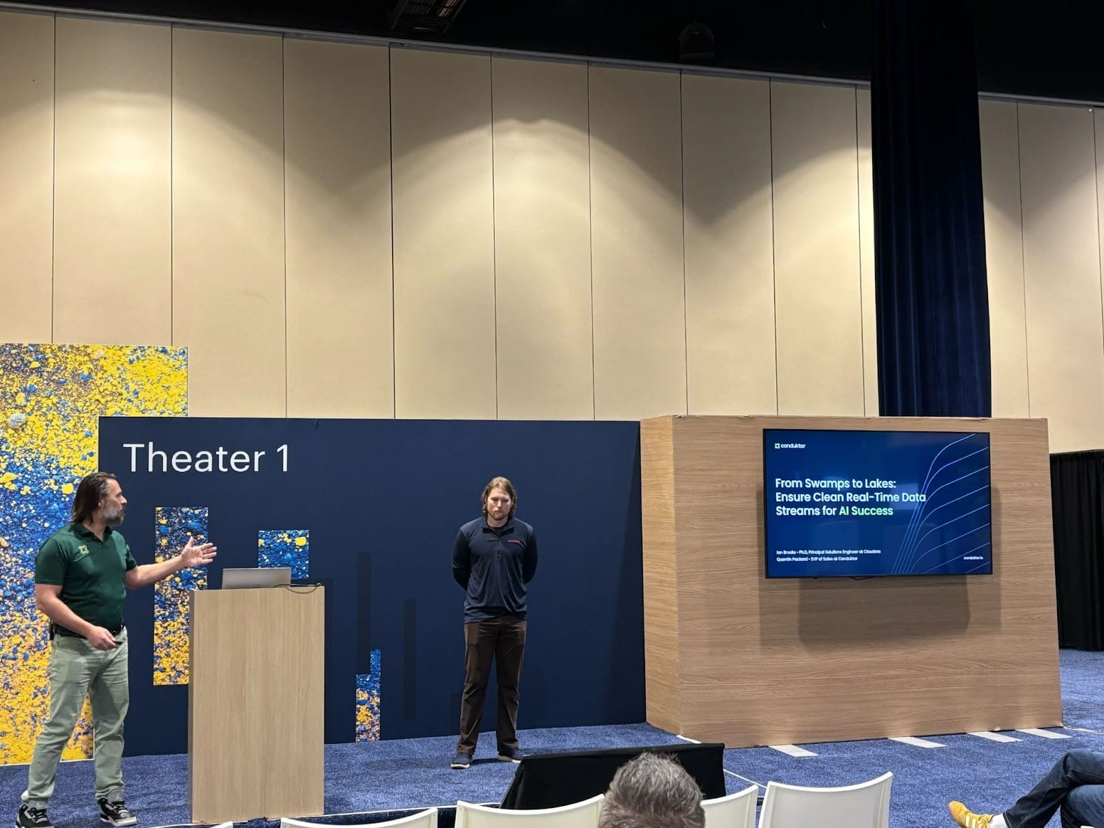 At the conference, Conduktor presented jointly with Cloudera. Quentin Packard (SVP of Sales at Conduktor) and Dr. Ian Brooks (Principal Solutions Engineer at Cloudera) discussed the critical role of clean, real-time data for AI.