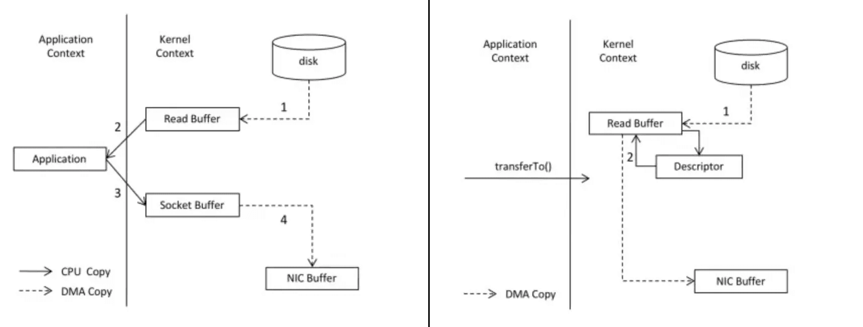 Figure 2: Comparing Zero Copy (On the left) to more traditional approaches (On the right) (3)