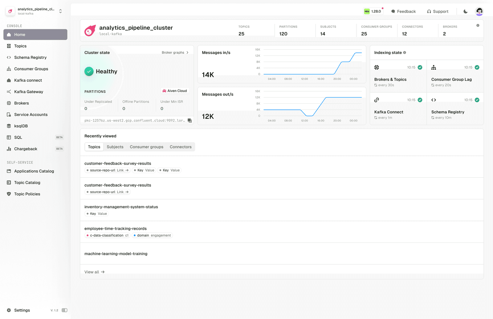 Query Kafka data with SQL. View cluster health at a glance. Share consume page filters with teammates.